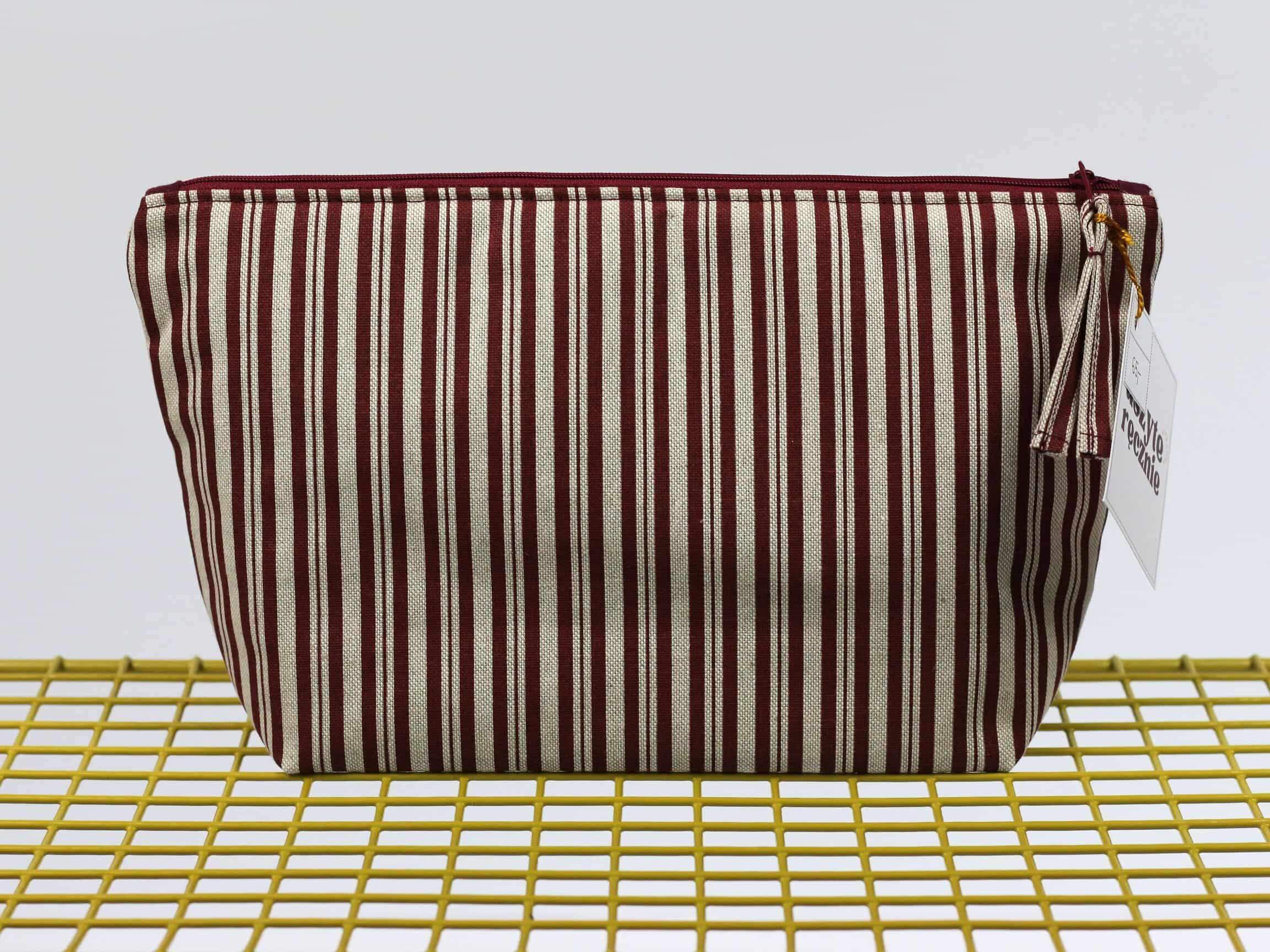 5. Beżowa kosmetyczka w bordowe paski [Ś]