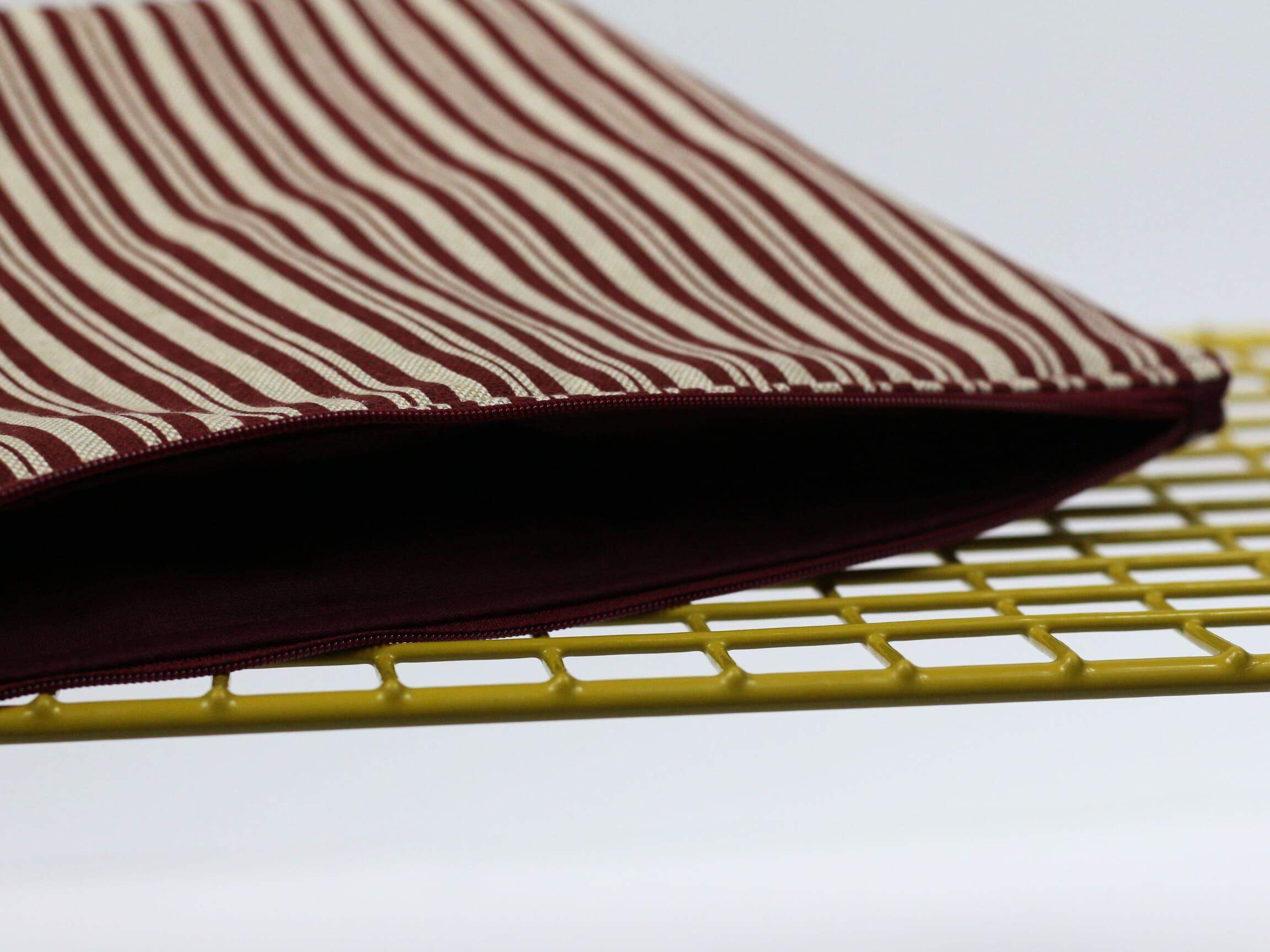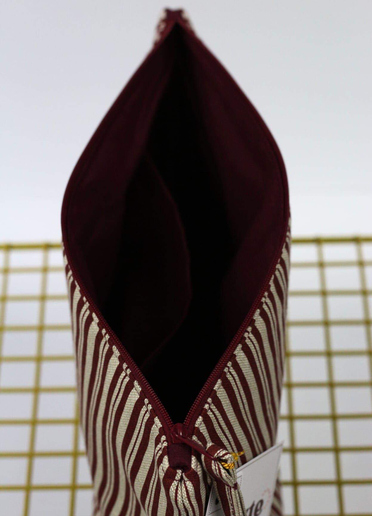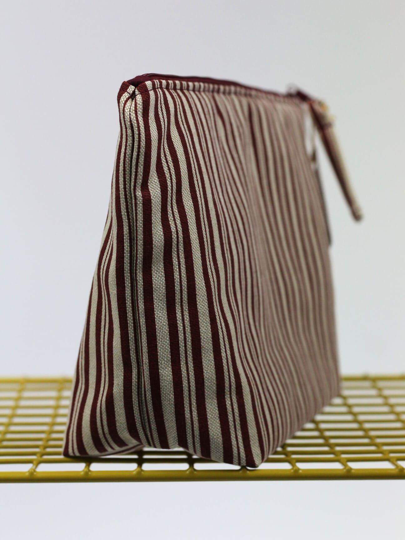 Beżowa kosmetyczka w bordowe paski [Ś]