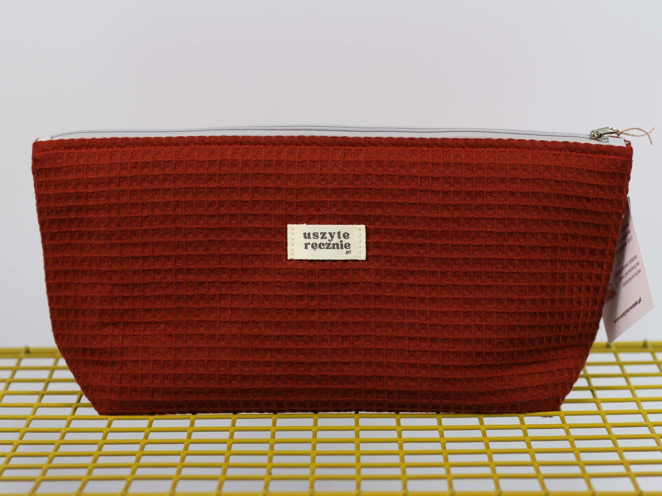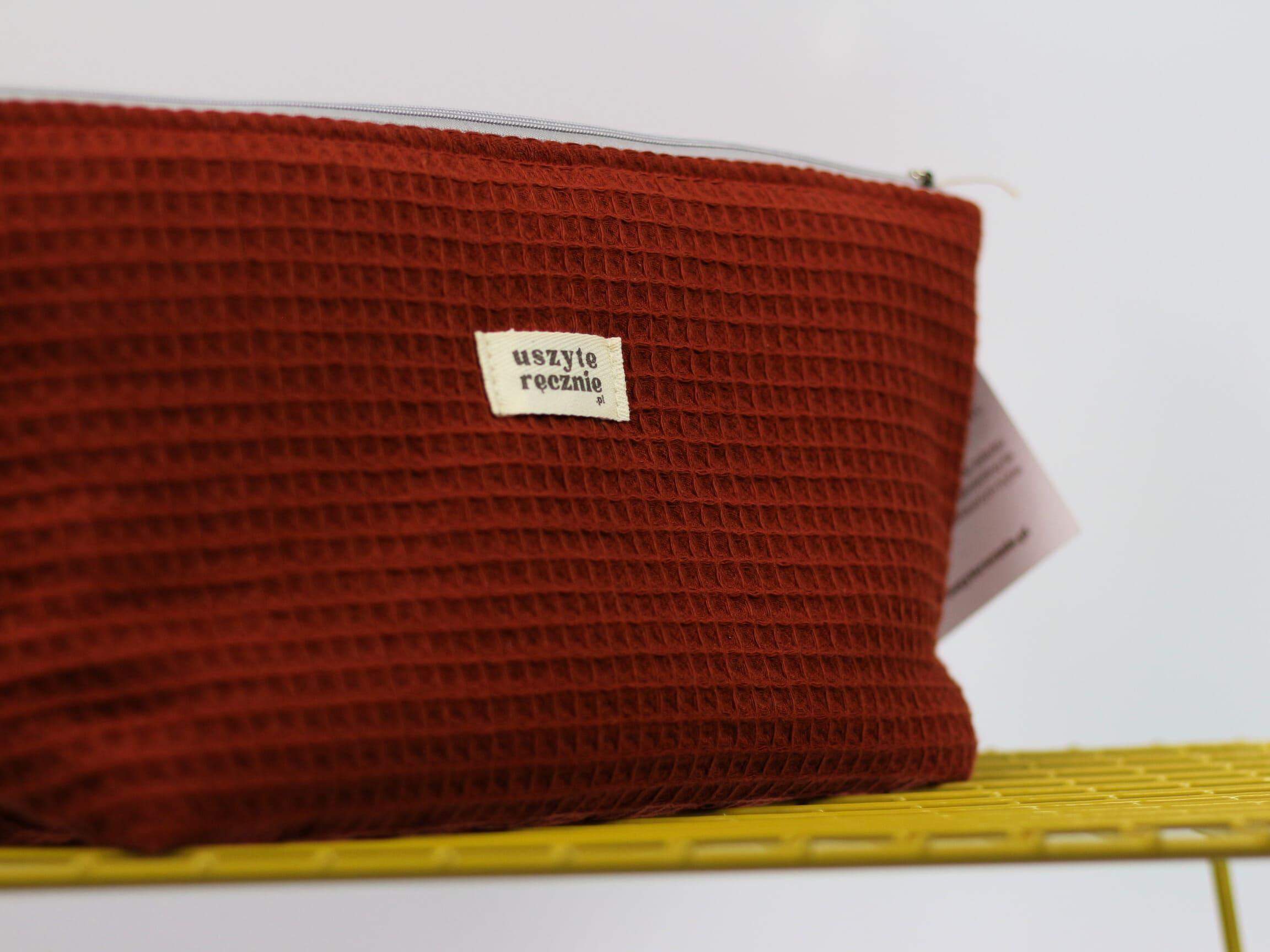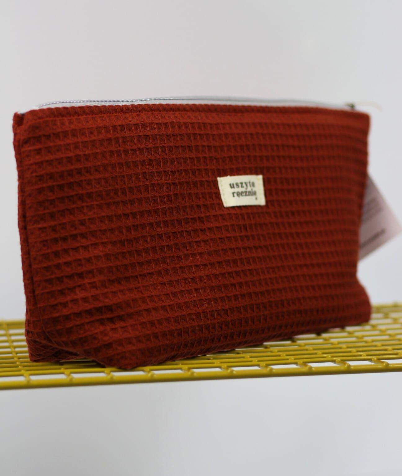 Ceglana kosmetyczka z waflowym tłoczeniem