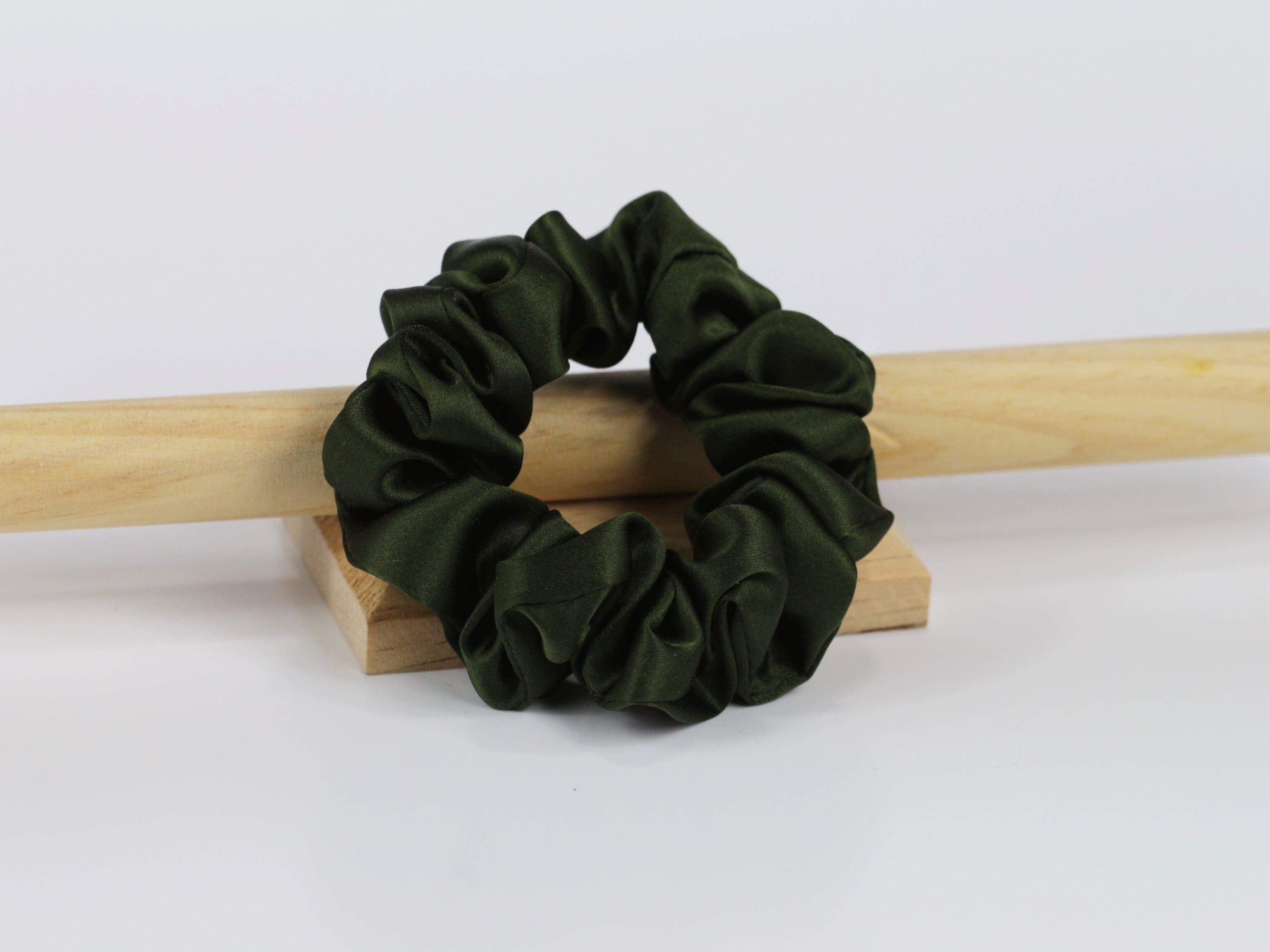 Jedwabna scrunchie SMALL - butelkowa zieleń
