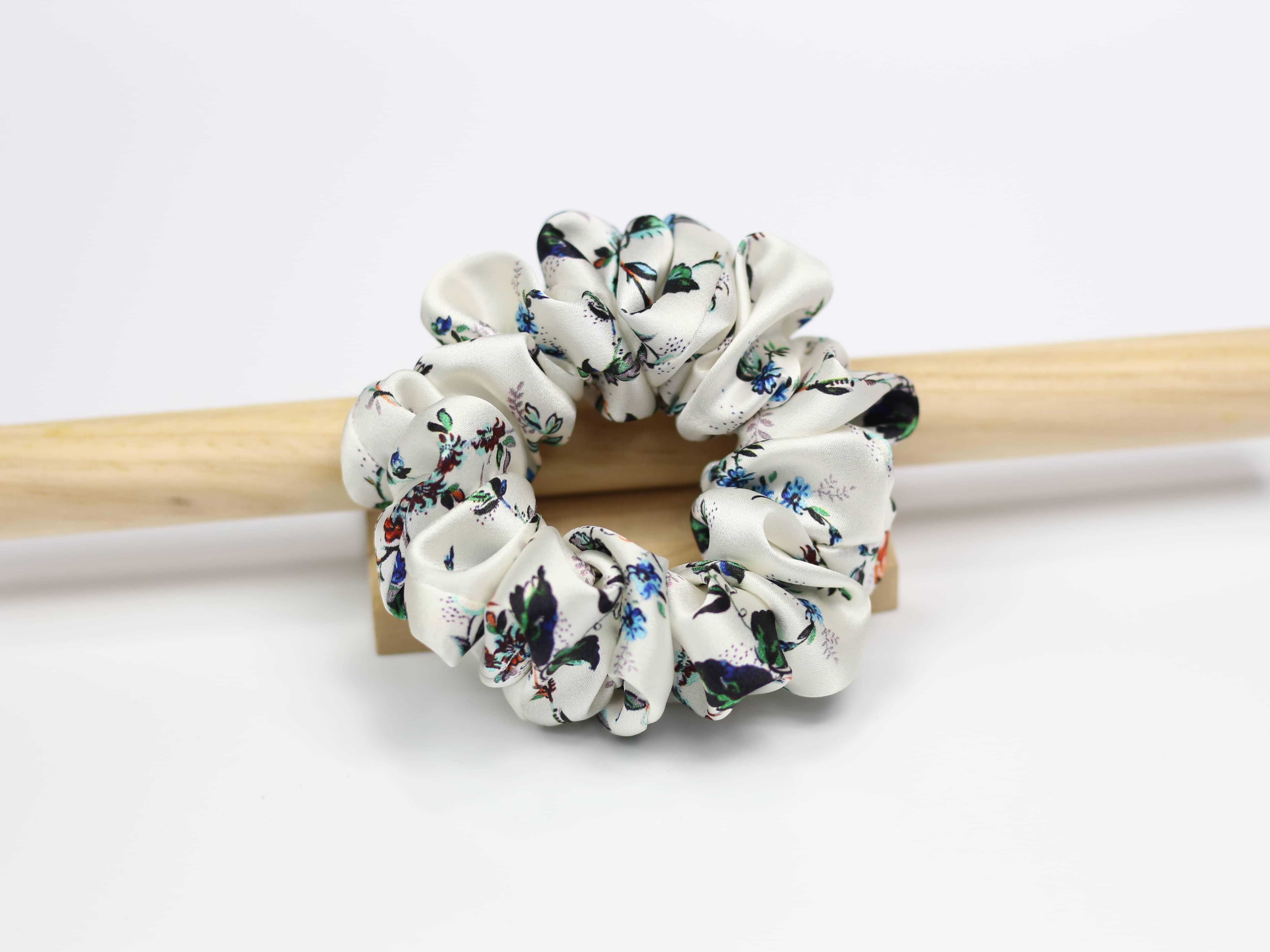 Jedwabna scrunchie SMALL - kwiatowy wzór