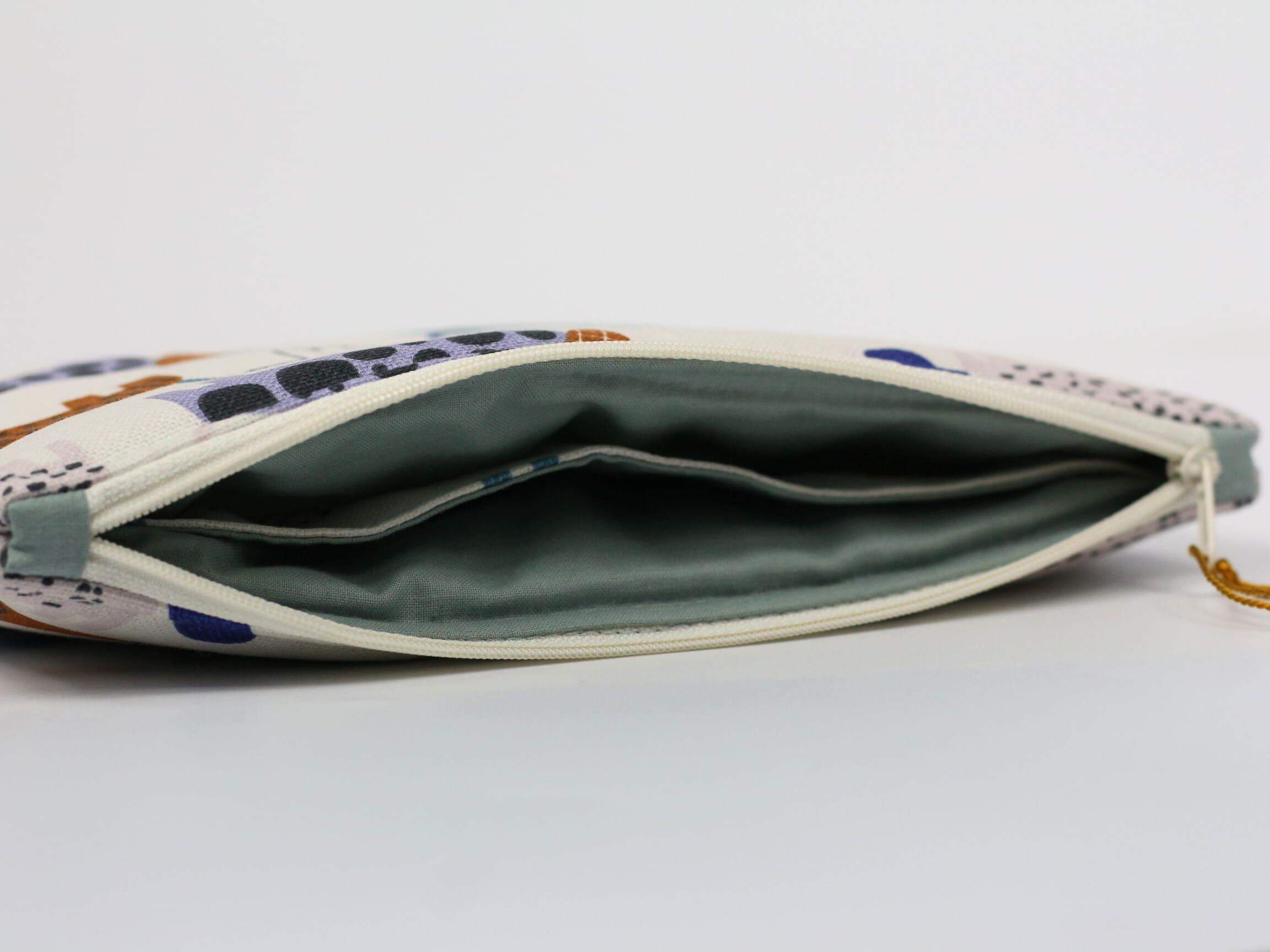 Płaska kosmetyczka wykonana z tkanin bawełnianych.