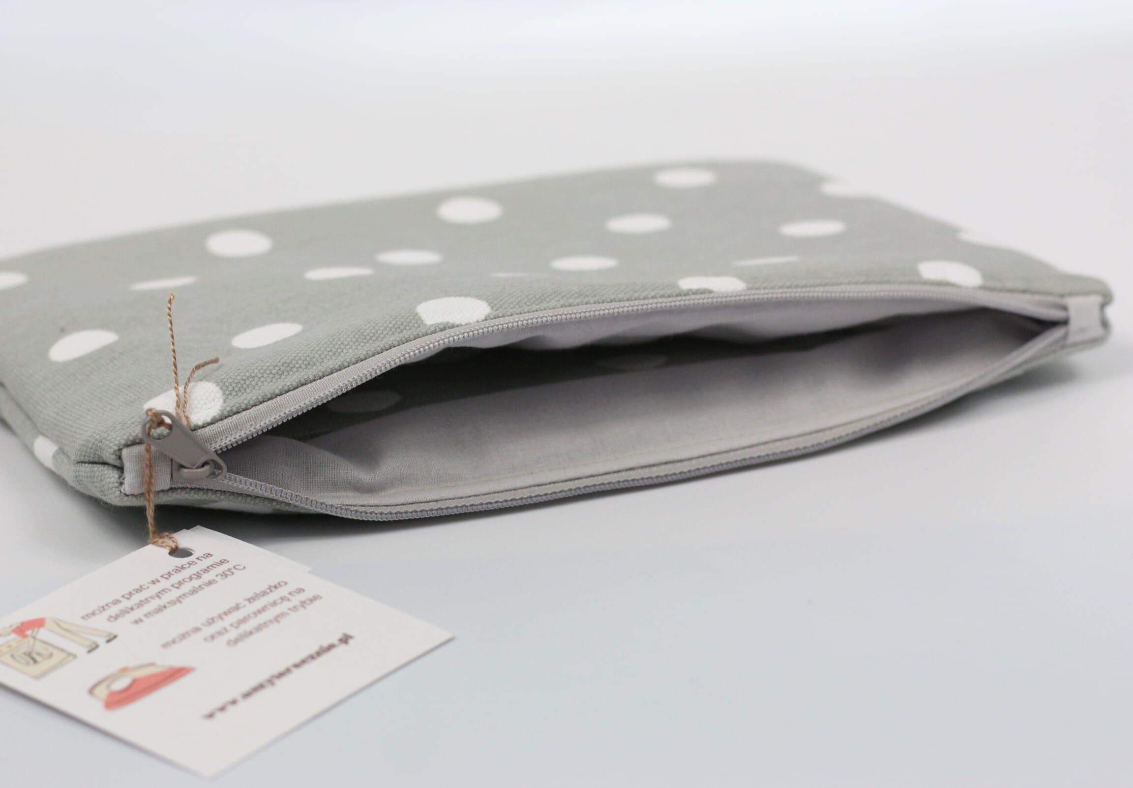 5. Kosmetyczka płaska - szara w grochy