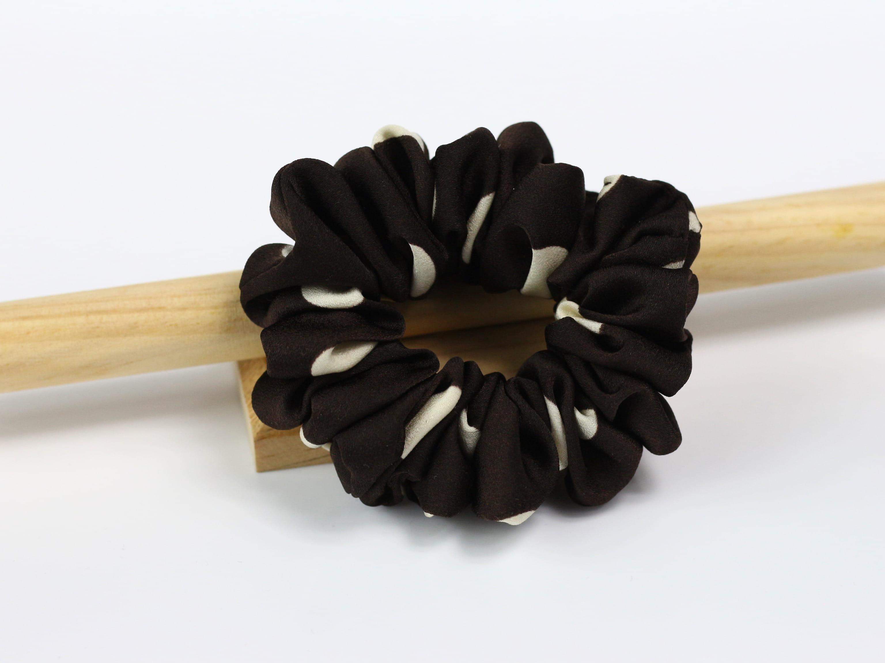 5. Scrunchie CLASSIC - ciemnobrązowa w grochy