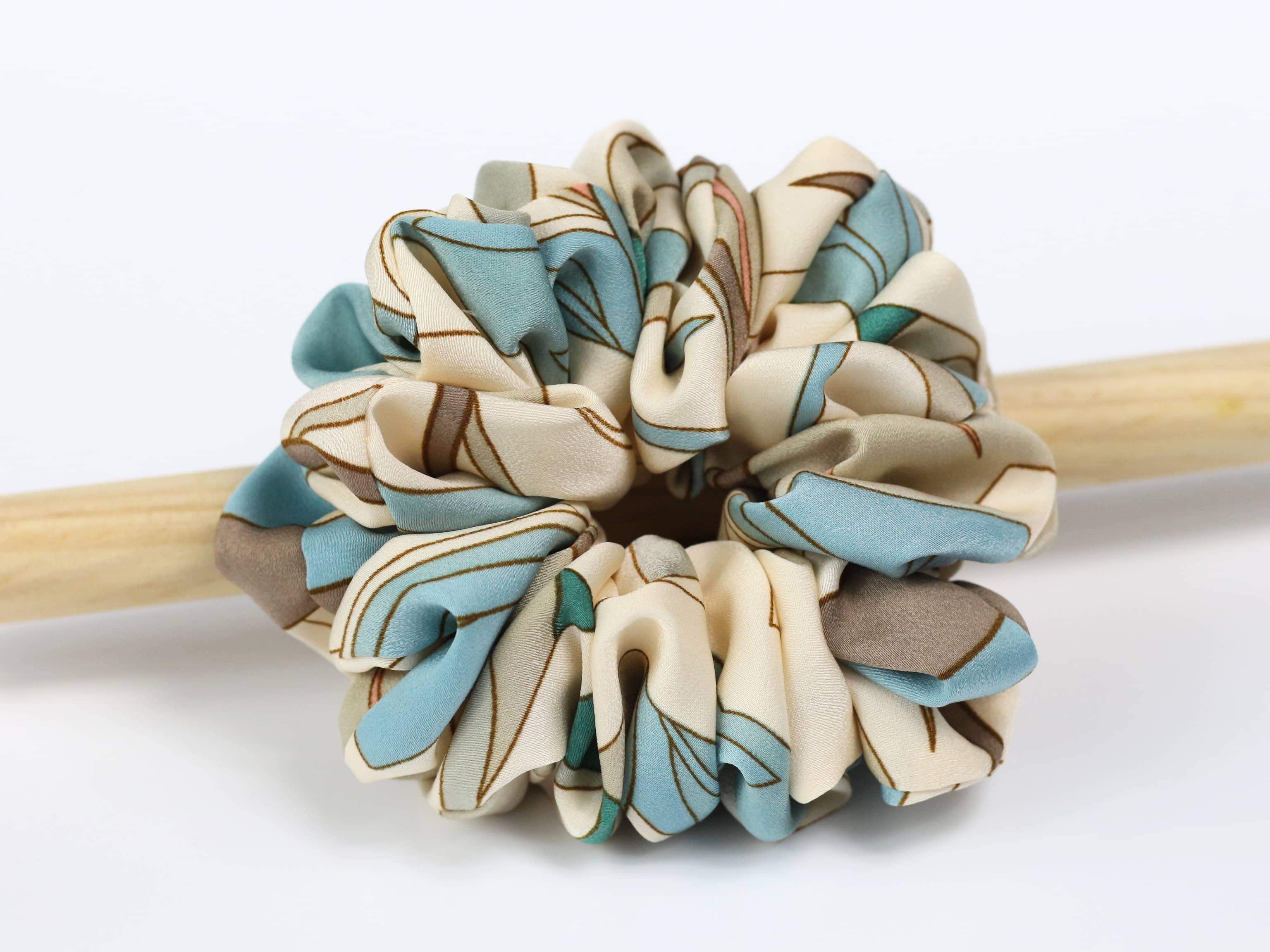 Wykończona overlockiem (anti-fray): dla zniwelowania prujących się od środka nitek. Użycie overlocka gwarantuje maksymalną trwałość i odporność materiału na strzępienie, przedłużając żywotność scrunchie.