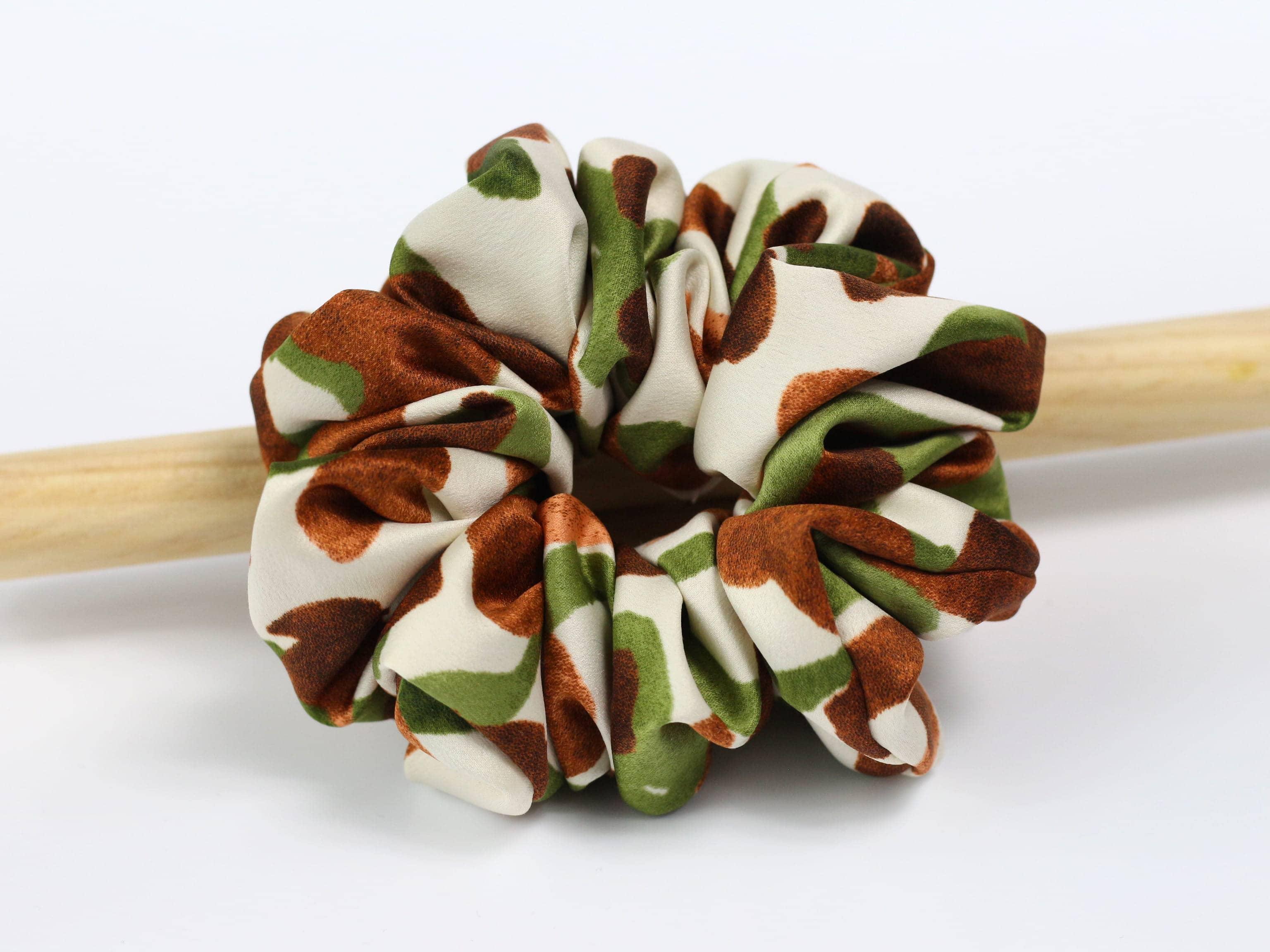 5. Scrunchie MAXI - zielonobrązowe wzory