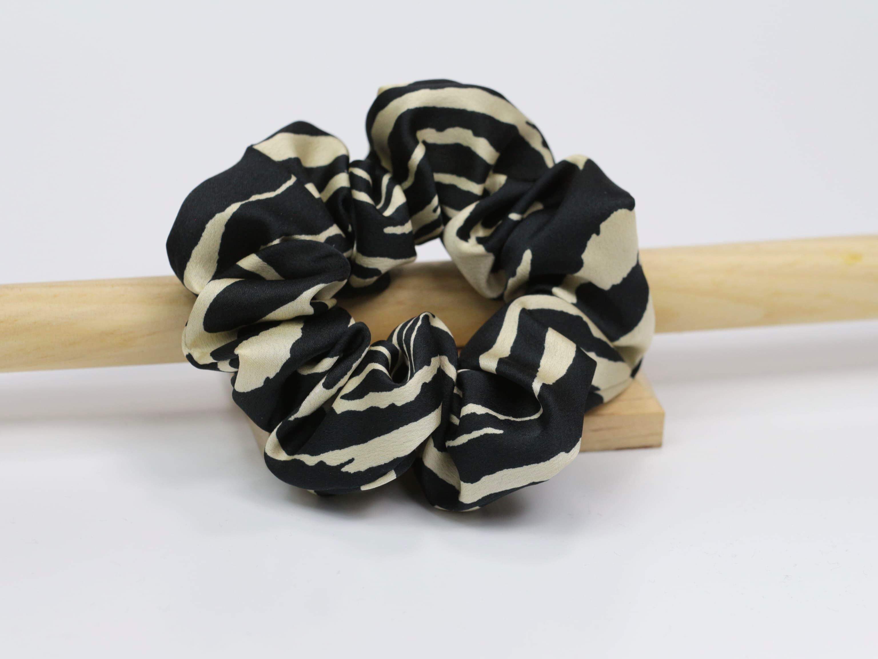 Wykończona overlockiem (anti-fray): dla zniwelowania prujących się od środka nitek. Użycie overlocka gwarantuje maksymalną trwałość i odporność materiału na strzępienie, przedłużając żywotność scrunchie.