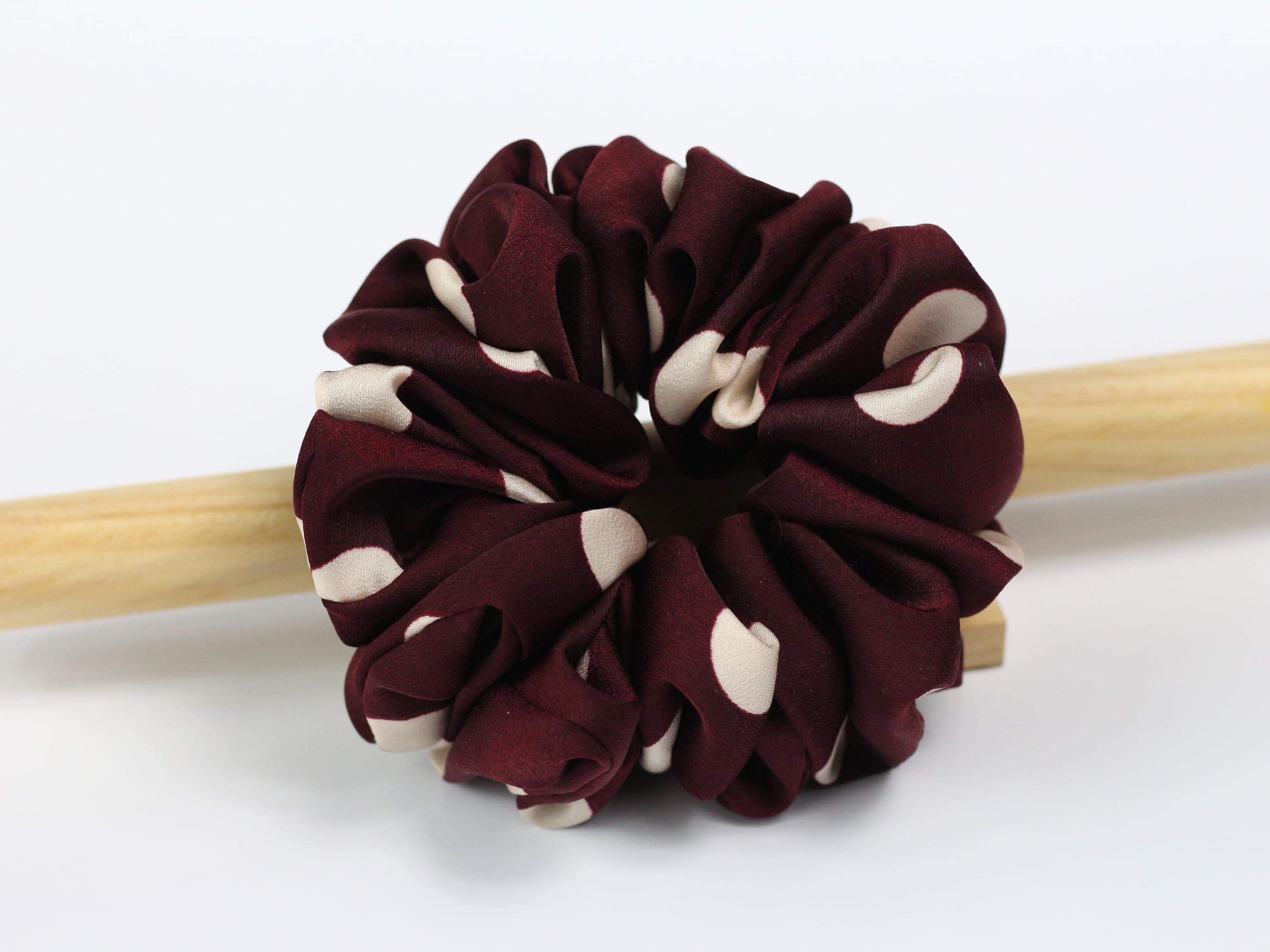 5. Scrunchie MAXI - bordowa w grochy