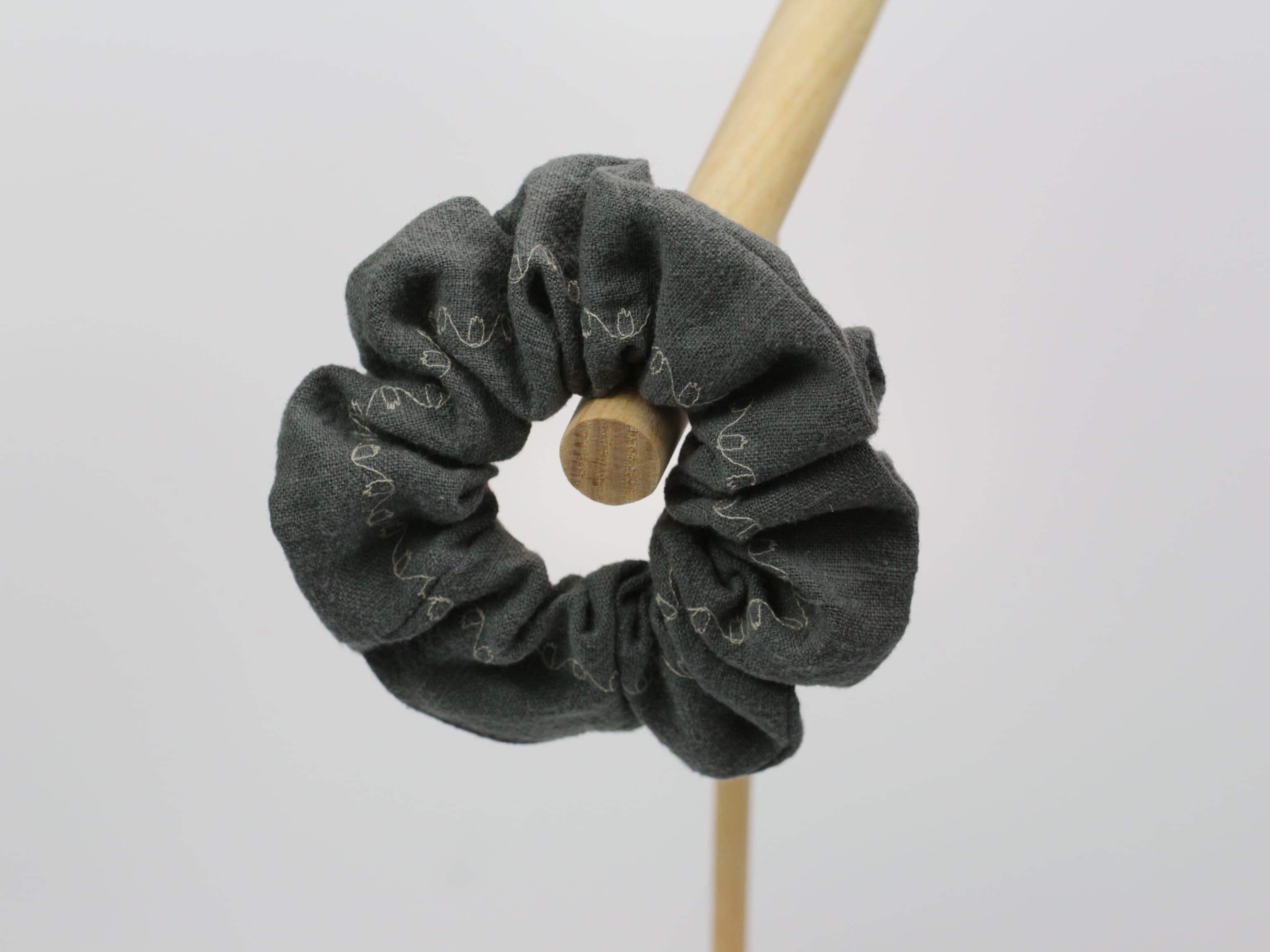5. Scrunchie MEDIUM - haftowana - 100% len