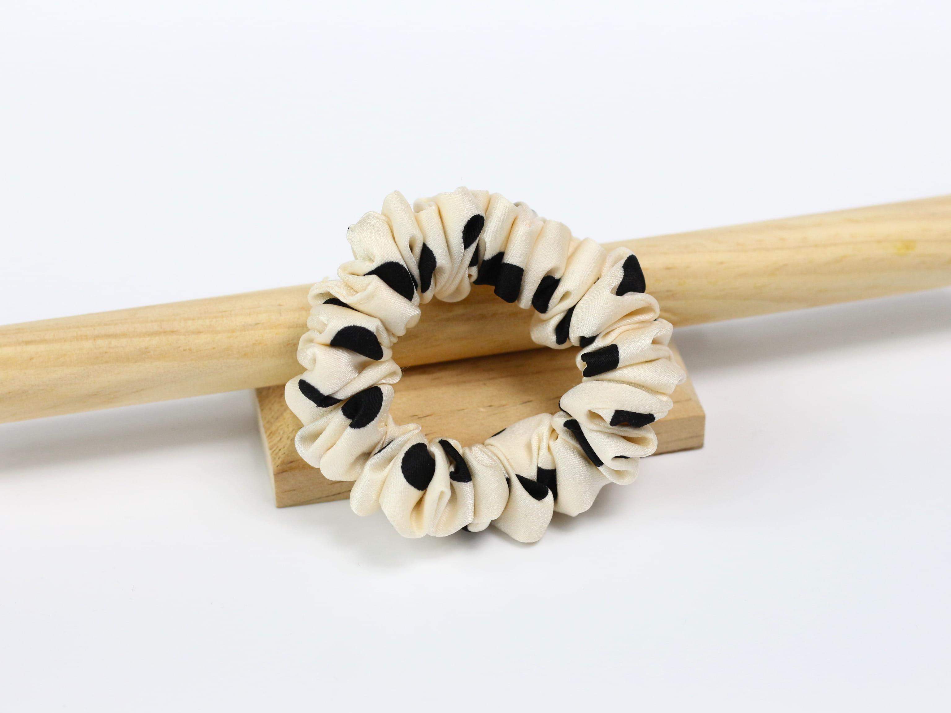 Scrunchie MINI - ecru w grochy