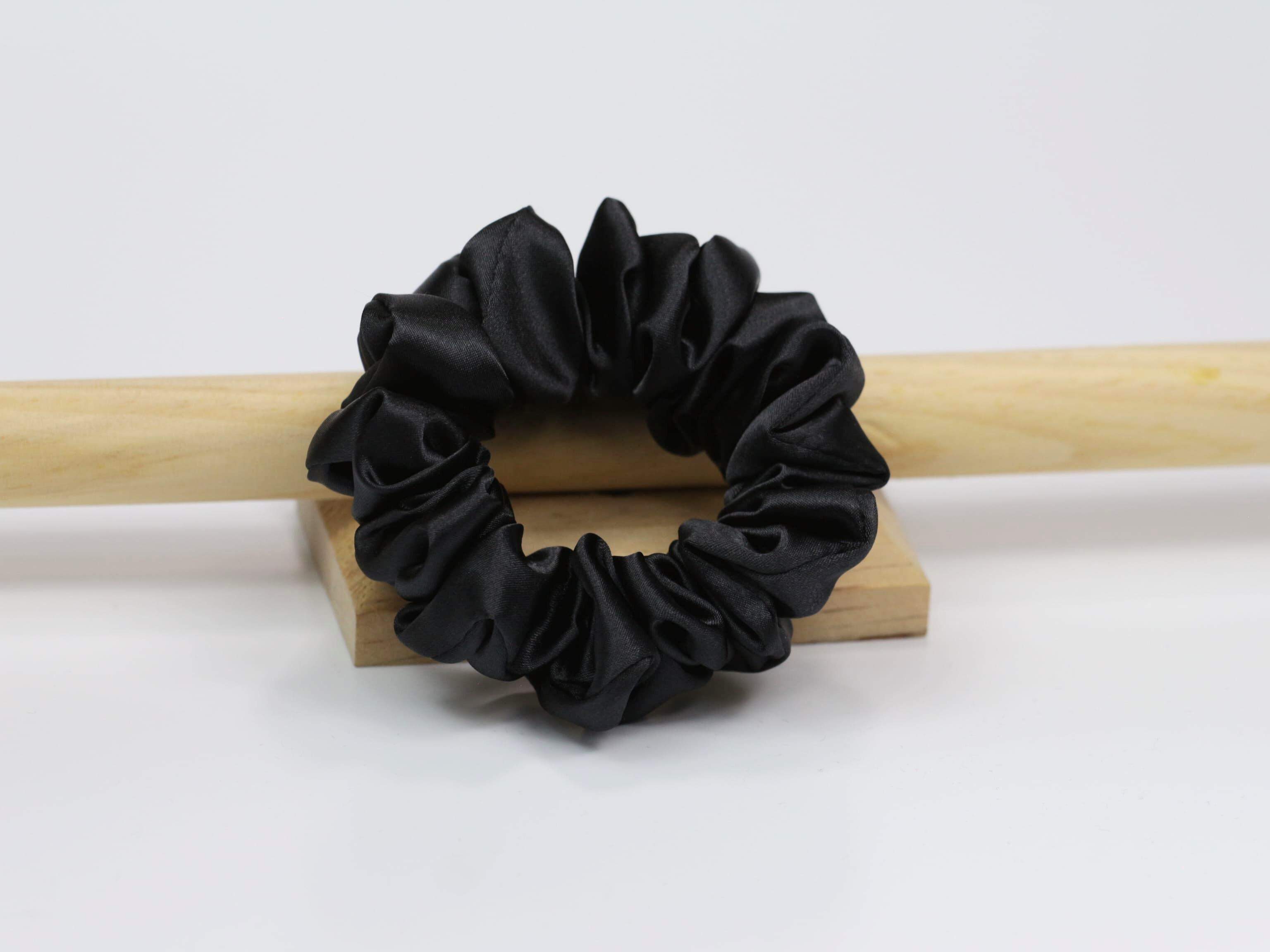 Wykończona overlockiem (anti-fray): dla zniwelowania prujących się od środka nitek. Użycie overlocka gwarantuje maksymalną trwałość i odporność materiału na strzępienie, przedłużając żywotność scrunchie.